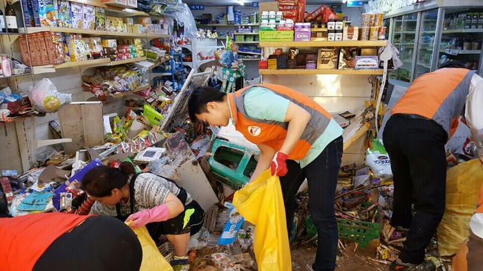 이날 한전은 피해복구 현장봉사를 위해 KEPCO 119 재난구조단 및 사회봉사단 등 연인원 465명을 투입하여, 태화시장과 아파트에서 건물에 침수된 물을 퍼내고 오염물품 청소 및 위험 전기설비 정리와 함께 생수 3000개, 컵라면 2000개를 전달했다.