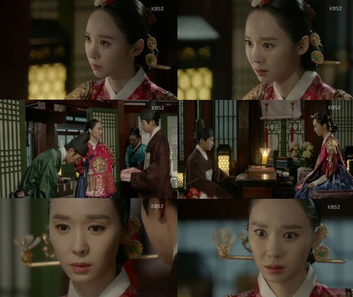 비밀스럽게 감추었던 본인 아이의 존재를 알고 있는 윤성에 치밀하게 준비했던 계획이 수포로 돌아갈 위기에 놓인 중전은 악에 받쳐 뻔뻔하게 맞서지만, 증거를 가지고 있다는 윤성의 이야기에 패닉상태에 빠졌다. 한수연은 중전의 심리상태를 실감 나게 표현해내 시청자들의 이목을 집중시켰다.