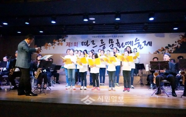 최근 경기 부천일신초등학교 어린이합창단원 20명은 부천대학교 한길아트홀에서 열린 제1회 따르릉 문화예술제에 찬조 출연했다. 사진은 합창단원들이 노래를 부르고 있는 모습.(사진제공=부천일신초등학교)