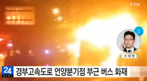 13일 오후 10시 10분께 울산 울주군 언양읍 경부고속도로 언양JC에서 경주IC 방향을 달리던 관광버스에서 불이 나 버스에 타고 있던 운전사와 승객 등 19명 가운데 10명이 숨졌다.