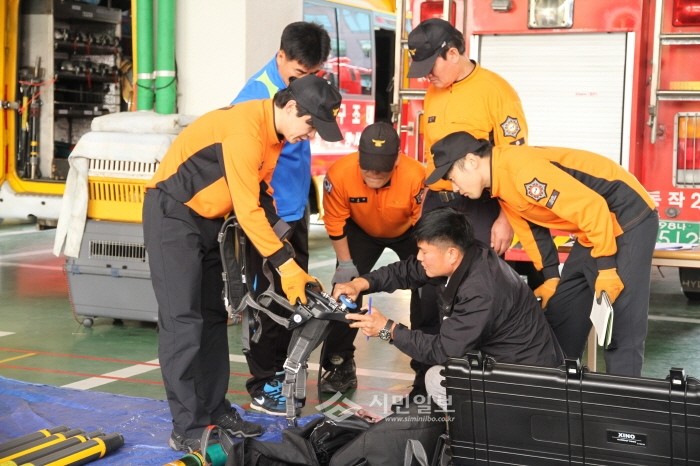 지난 13일 서울 동작소방서는 오전 9시 서울소방재난본부 주관으로 '2016년 소방장비 관리상태 확인점검'을 실시했다. 사진은 소방서 관계자들이 장비를 점검하는 모습.(사진제공=동작소방서)