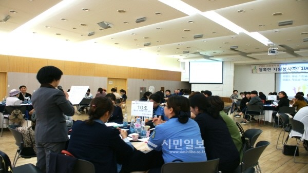 최근 서울 은평구 자원봉사센터는 구청 은평홀에서 지역내 자원봉사자와 자원봉사에 관심이 있는 구민을 대상으로 '2016년 자원봉사 원탁토론-행복한 자원봉사자! 100인의 이야기'를 개최했다. 사진은 참가자들이 토론하는 모습.(사진제공=은평구청)