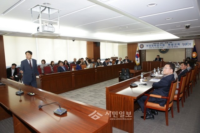 [시민일보=표영준 기자]서울 은평구의회(의장 성흠제)는 최근 구의회 행정복지위원회 회의실에서 의원과 의회사무국 직원을 대상으로 '부정청탁 및 금품 등 수수의 금지에 관한 법률(일명 김영란법, 이하 청탁금지법)'에 대한 교육을 실시했다고 18일 밝혔다.