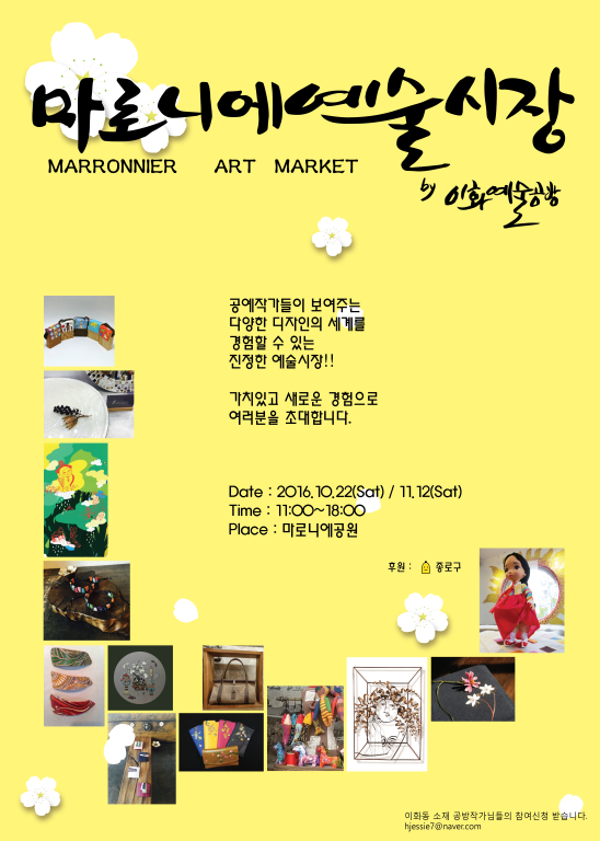 이화예술공방 주최, 종로구 후원으로 진행되는 이번 행사에는 총 15개 팀이 참가하며 ▲이화예술마켓 ▲함께하는 공예체험 ▲현장전시 등 직접 참여할 수 있는 체험프로그램과 예술품 판매 등으로 구성된다.