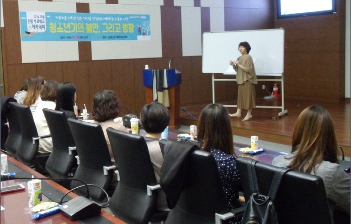 지난 18일 은평구는 구청 대회의실에서 학부모 120여명이 참석한 가운데 은평부모학교 아카데미 10월 공개강좌를 개최했다. 사진은 강사로 초청된 치유심리학자 김영아 교수가 강연을 진행하고 있는 모습.(사진제공=은평구청)