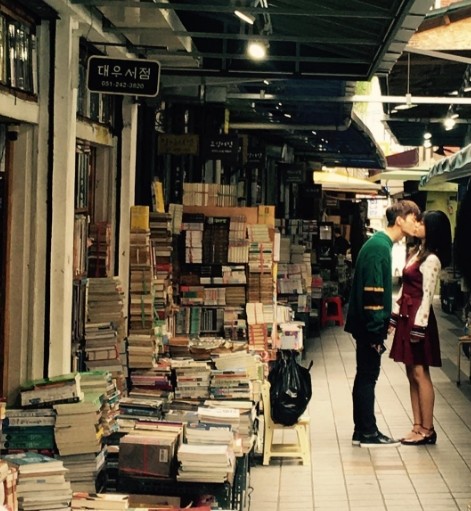 사진 속에는 서인국과 남지현이 부산의 보수동 헌책방골목에서 입을 맞추고 있으며 빈티지한 분위기와 배경이 키스 장면을 더욱 로맨틱하게 만들고 있어 보는 이들의 부러움을 일으켰다.