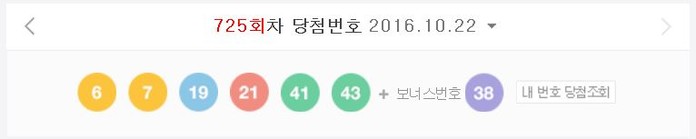 나눔로또 당첨번호 '6,7,19,21,41,43'번, 보너스 번호는 '38번'