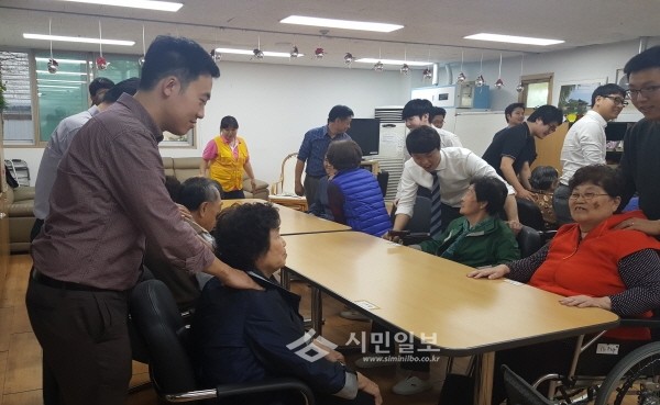 최근 서울 성동구 자원봉사센터는 성동노인종합복지관과 연계해 CJ그룹 직원 및 건강도우미 봉사단과 함께 ‘스포츠마사지 봉사활동’을 실시했다. 사진은 참가자들이 노인들에게 안마 봉사를 하고 있는 모습.(사진제공=성동구청)