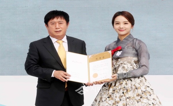 최근 경기 용인시는 시청 광장에서 열린 '용인패밀리페스티벌' 행사에서 '국악 소녀' 송소희씨(20, 여)를 제2호 '용인시 홍보대사'로 위촉했다. 사진은 정찬민 시장(왼쪽)과 송씨가 위촉장을 들고 기념촬영하는 모습.(사진제공=용인시청)