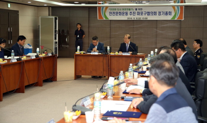 구청 중회의실에서 열린 안전문화운동추진 마포구협의회 정기총회에서 참여 기관 및 단체는 3대 핵심 실천과제 선정과 함께 안전문화의식 확산을 위한 제도개선 및 시책발굴, 캠페인 지원, 안전문화 관련 정보 및 자료를 공유하기로 했다.