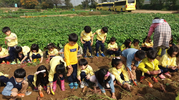 지난 21일 경기 수원시 권선구 입북동 새마을협의회는 유치원 어린이 100여명과 함께 고구마캐기 체험행사를 진행했다. 사진은 어린이들이 열심히 고구마를 캐는 모습.(사진제공=권선구청)