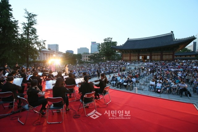 | ▲ 지난 정동야행에서 서울 팝스오케스트라가 덕수궁 중화전서 공연을 진행하고 있다. | ||