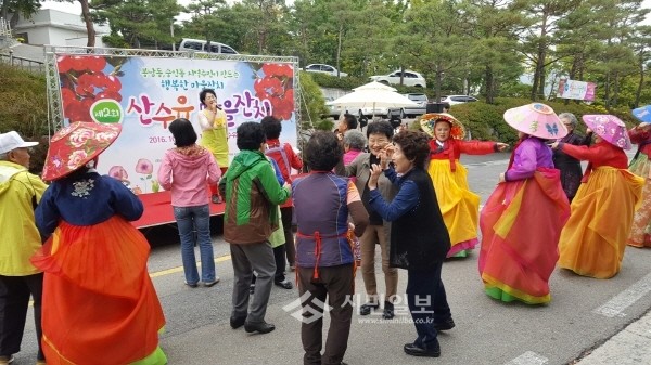 최근 경기 안성시 산수유길에서 봉숭안마을협의체(봉남동·숭인1통·숭인2통)가 주최하는 3개 마을 합동 마을잔치인 ‘제2회 산수유 마을잔치’가 개최됐다. 사진은 참가자들이 한복을 차려 입고 축제를 즐기는 모습.(사진제공=안성시청)