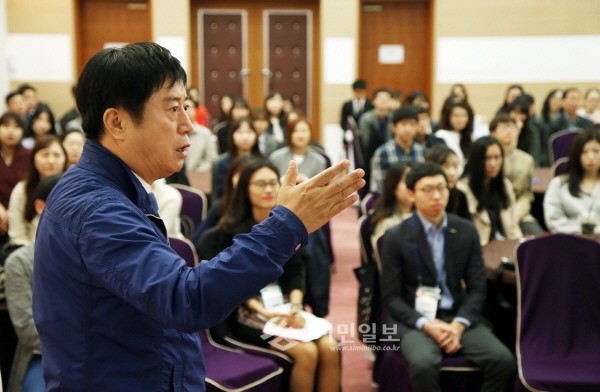 최근 경기 용인시는 신규임용 및 임용예정 공직자 259명을 대상으로 '시정 이해와 공직가치 함양을 위한 역량 강화교육'을 실시했다. 사진은 특강에 나선 정찬민 시장(왼쪽)이 강연하는 모습.(사진제공=용인시청)