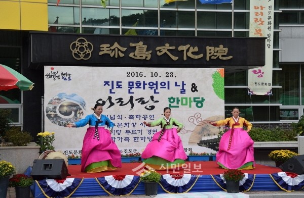 최근 전남 진도군은 진도문화원 앞마당에서 '2016 진도문화원의 날 기념식'과 '아리랑 한마당행사'를 개최했다. 사진은 문화원 앞마당에서 축하 공연이 펼쳐지고 있는 모습.(사진제공=진도군청)