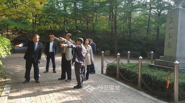 구의회에 따르면 이날 최 의장은 구청 이종한 공원녹지과장의 브리핑을 받으며, 근래들어 역사인식에 대한 구민들의 관심이 지대한 만큼 3·1운동 기념테마 공원 조성에 각별히 신경 써 줄 것을 당부했다.