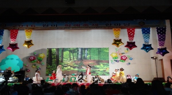 28일 경기 부천시 원미초등학교는 교육과정 및 방과후학교 운영 결과 발표회의 일환으로 '2016 원미학예축제 한마당'을 실시했다. 사진은 학생들이 공연을 펼치는 모습.(사진제공=부천교육지원청)