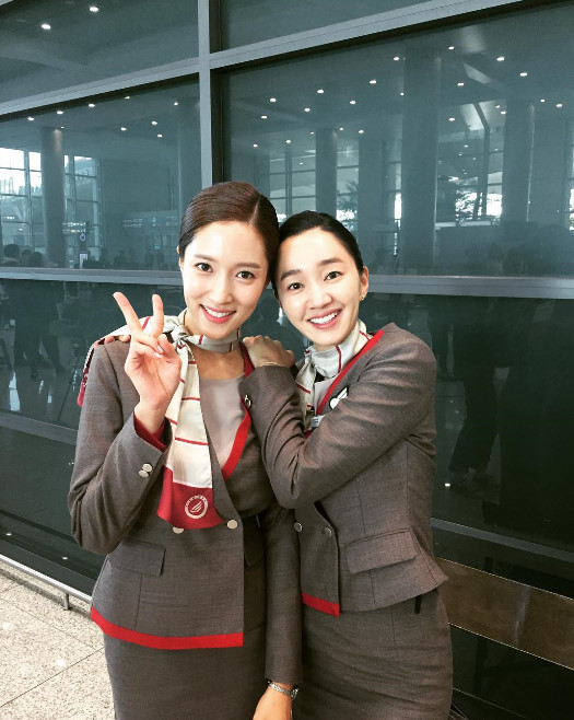 공개된 사진 속 왕빛나와 수애는 승무원유니폼을 입고 활짝 웃는 모습으로 실제 스튜어디스를 연상케 했다.