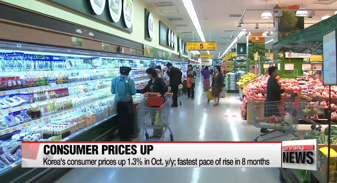 1일 통계청이 발표한 10월 소비자물가동향에서 지난달 소비자물가지수는 1년 전보다 1.3% 증가했다.