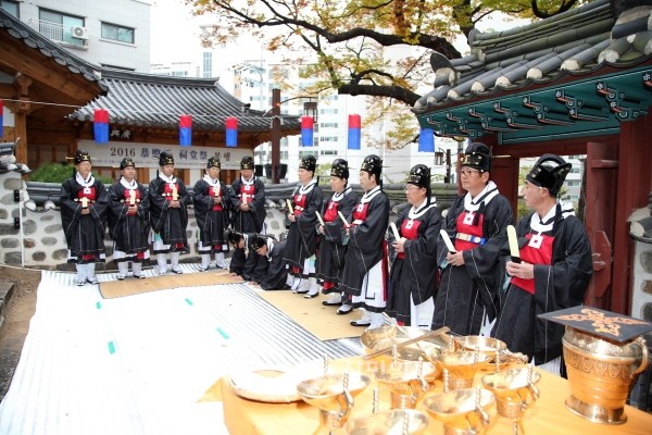 지난 31일 서울 마포구 창전동 소재 공민왕 사당에서 마포문화원이 주최하고 공민왕사당제 봉행추진위원회와 와우회가 주관한 가운데 '2016년 공민왕 사당제'가 열렸다. 사진은 제관들이 제사를 봉행하고 있는 모습.(사진제공=마포구청)