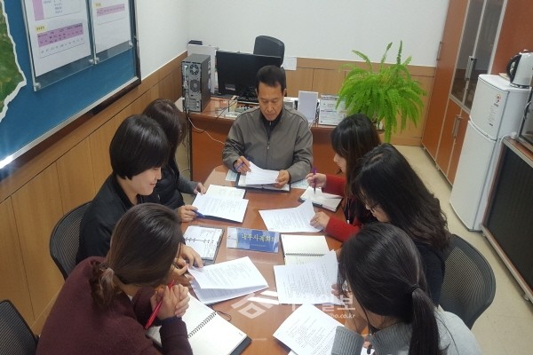 지난달 31일 경기 동두천시 송내동행정복지센터는 맞춤형 복지팀 주관으로 '내부 사례회의'를 실시했다. 사진은 수급자 담당자 및 사례관리팀 직원들이 회의하는 모습.(사진제공=동두천시청)