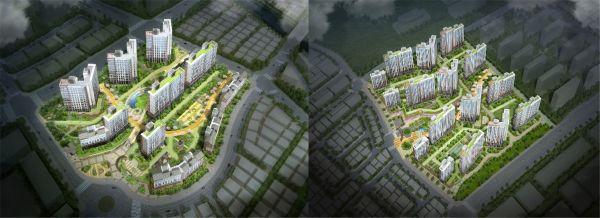 | ▲ 동탄2신도시 중흥S-클래스 에코밸리조감도(좌)∙에듀하이조감도(우) | ||