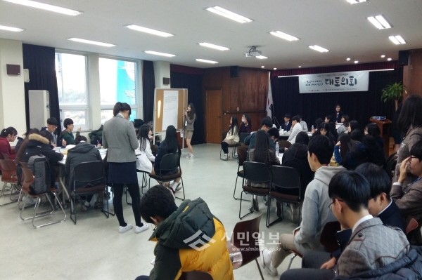 지난 1일 경기 안성시가 주최하고 청소년선도위원회 안성시지부가 주관한 '2016년 제2회 안성시 청소년 대토의회'가 안성1동 주민센터 2층 대회의실에서 개최됐다. 사진은 학생들이 토론을 진행하는 모습.(사진제공=안성시청)