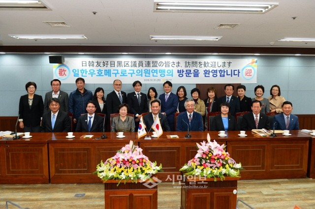 | ▲ 중랑구의원들과 메구로구 의원연맹 대표단이 기념촬영을 하고 있다.(사진제공=중랑구의회) | ||
