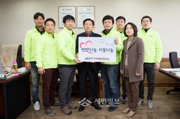 구미청년회의소, 홀몸노인에게 연탄 4000장, 이불35채, 라면10박스 전달