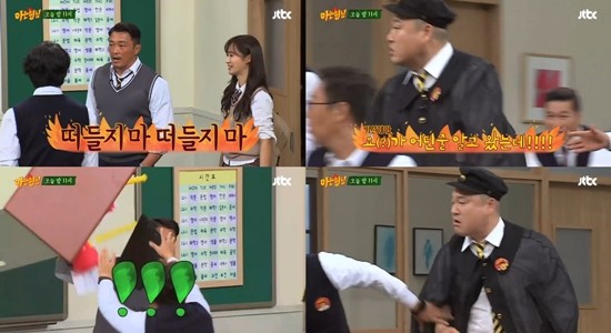이에 강호동은 질세라 “여기가 어디라고”라고 맞받아치지만 추성훈이 교탁을 번쩍 드는 등 강인한 면모를 보였다.