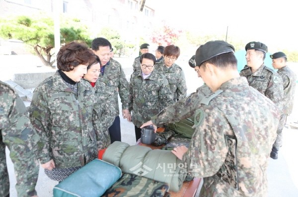최근 서울 도봉구의회는 육군 제56사단 제223연대에서 열린 부대초청행사에 참석해 장비 및 물자견학, 병식체험 등 병영체험을 실시했다. 사진은 이근옥 의장(왼쪽에서 네번째)과 의원들이 군 장비를 살펴보는 모습.(사진제공=도봉구의회)