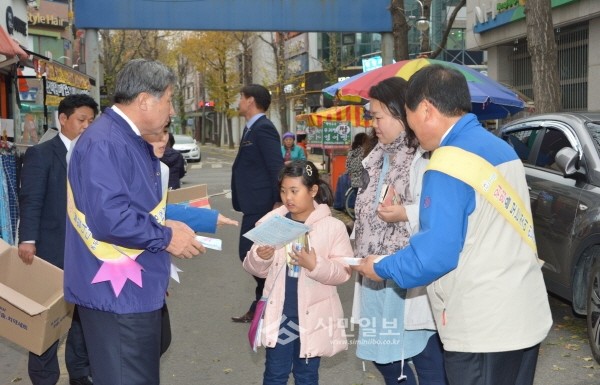 최근 경기 동두천시는 중앙도심공원 앞에서 안전총괄과, 동두천소방서, 의용소방대 등 20여명이 참여한 가운데 제248차 안전점검의 날 캠페인을 실시했다. 사진은 오세창 시장(왼쪽)이 시민들에게 홍보물을 배부하는 모습.(사진제공=동두천시청)