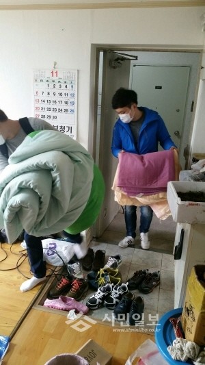 최근 경기 오산시 무한돌봄센터와 LG이노텍 자원봉사단은 지역내 취약계층 3가구를 대상으로 ‘무한크리미 주거환경 개선사업'을 실시했다. 사진은 봉사자들이 집안 청소를 하고 있는 모습.(사진제공=오산시청)