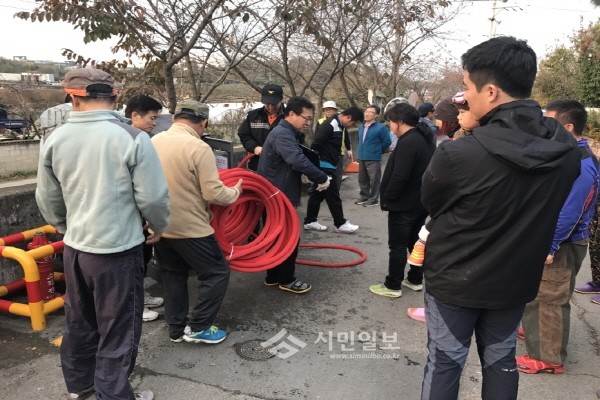 지난 6일 경기 화성소방서는 정남면 덕절리 주민을 대상으로 비상소화장치 사용법 등의 교육훈련을 실시했다. 사진은 소방서 관계자가 주민들에게 교육훈련을 하는 모습.(사진제공=화성소방서)