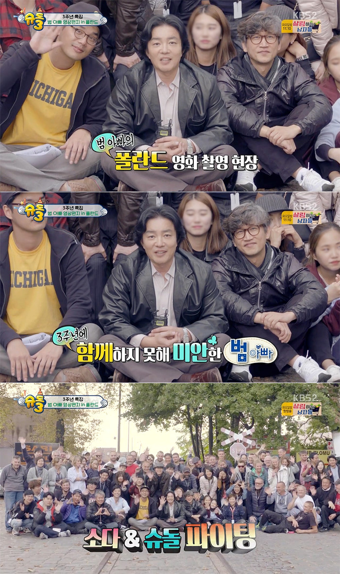 지난 6일 방송된 KBS2 예능 '슈퍼맨이 돌아왔다' 3주년 특집에서는 영화 촬영 차 합류하지 못한 이범수가 영상 편지로 아빠의 마음을 대신하는 장면이 공개됐다. 이 영상에는 이범수뿐만 아니라 영화 '사선에서'의 노규엽 감독부터 배우 연우진, 조승연은 물론 심지어 폴란드 현지 스태프까지 전원이 영상 편지에 등장해 눈길을 끌었다.