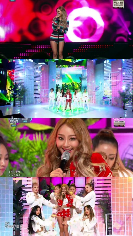 효린은 지난 10일 오후 6시 방송된 Mnet '엠카운트다운' 500회 특집에서 타이틀곡 '파라다이스'(Paradise)와 수록곡'원 스텝'(One step)의 무대를 선보였다.