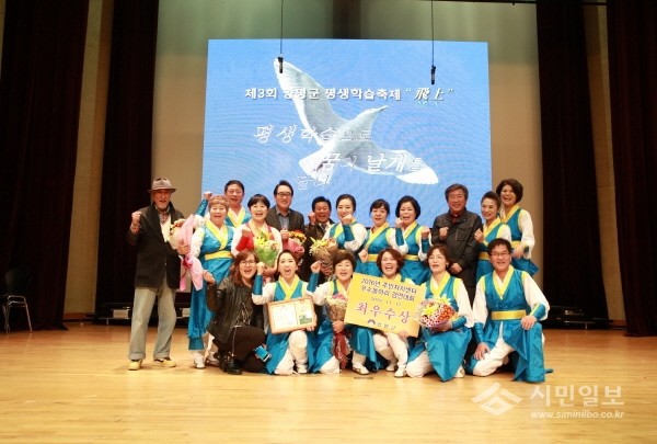 지난 12일 '2016년 양평군 주민자치센터 우수동아리 경연대회'에서 단월면 주민자치센터 동아리 '소리산 난타'가 최우수상을 받았다. 사진은 동아리 회원들이 시상식 이후 기념촬영을 하고 있는 모습.(사진제공=양평군청)