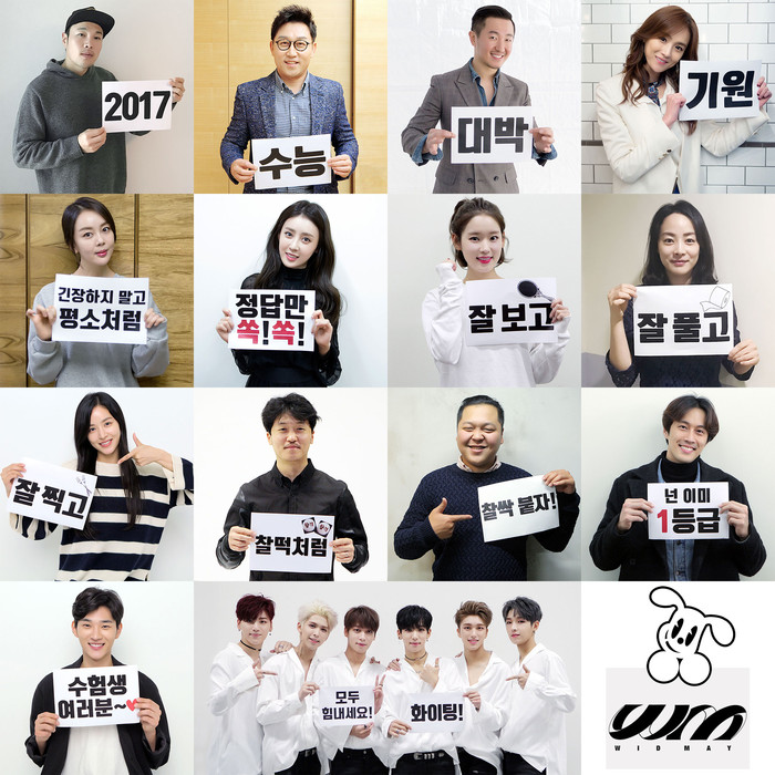 2017학년도 대학수학능력시험을 하루 앞둔 16일 위드메이는 소속 연예인들의 수능 응원 사진을 공개하며 수능대박을 기원했다. 공개된 사진은 신승환, 김현욱, 안일권, 이희진, 백보람, 이슬비, 박환희, 김리나, 안지혜, 심윤보, 유준홍, 백준서, 이도겸, 스누퍼 등 위드메이 소속 연예인들이 릴레이 문구를 들고 있으며, 독특한 응원으로 재미를 선사했다.