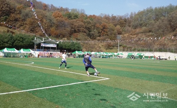 최근 경기 이천시 백사체육공원에서 열린 제61회 백사면민 체육대회가 성황리에 종료됐다. 사진은 체육대회에 참여한 주민들이 축구 시합 전에 축구 공으로 몸을 푸는 모습.(사진제공=이천시청)