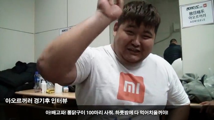 아오르꺼러는 152kg의 거구다. 덩치가 큰 만큼 큰 덩치를 유지하기 위해서는 먹는 양도 많다. 그는 "통닭구이 100마리 사달라. 하루 밤에 다 먹어 치울 거야"라며 먹방도 요구해 웃음을 자아내기도 했다.