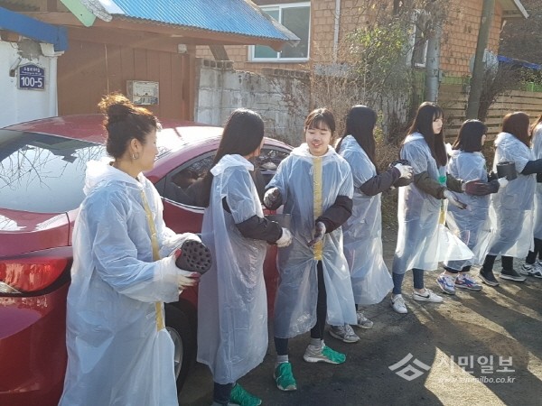 지난 19일 서울 도봉구의 학부모·학생이 함께하는 ‘샤프론·프론티어/챌린저 봉사단’이 도봉동 안골에서 사랑의 연탄 나눔 봉사활동을 실시해 저소득 10가구에 연탄 3000장을 전달했다. 사진은 봉사자들이 연탄을 나르고 있는 모습.(사진제공=도봉구청)