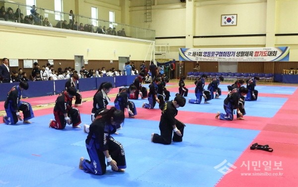 지난 20일 서울 영등포구는 영등포 제1스포츠센터에서 '제1회 영등포구협회장기 생활체육 합기도대회'를 개최했다. 사진은 참가 학생들이 합기도 시범을 선보이고 있는 모습.(사진제공=영등포구청)