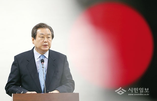 새누리당 김무성 전 대표가 23일 오전 국회 의원회관에서 기자회견을 열고 대선 불출마 선언을 한 뒤 취재진의 질문을 받고 있다.