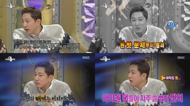 한석준은 지난 23일 오후 방송된 MBC 예능프로그램 '라디오스타'에 출연해 네티즌들이 사용하는 신조어를 완전 정복했다고 자신감을 내비쳤다.