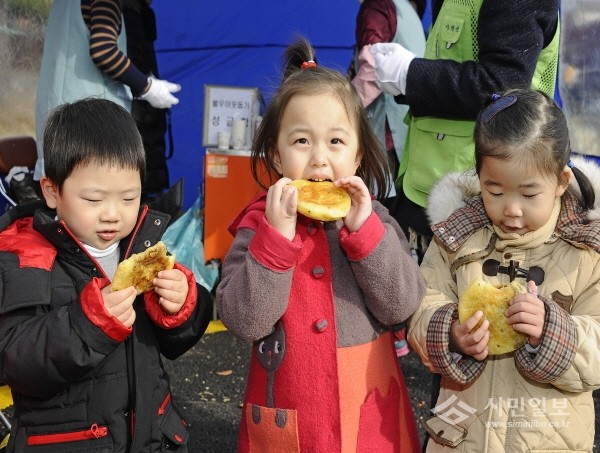 지난 22일 오전 11시~오후 3시 서울 광진구 광장동주민센터 인근에서 이웃돕기 기금 마련을 위한 사랑의 호떡 판매행사가 열렸다. 사진은 호떡을 먹으며 좋아하는 아이들의 모습.(사진제공=광진구청)