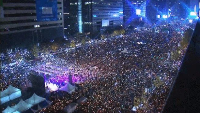 촛불집회는 투표를 잘못해서 이 나라가 이렇게 됐으니 이제는 투표에 준하는 촛불집회로 새로운 의사를 표현자는 시민과 국민들이 동참했다.