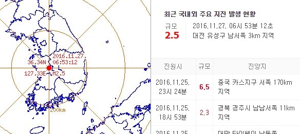대전에서 규모 2.5도의 지진이 발생했다.