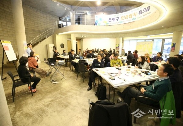 최근 서울 은평구는 은평형 협치문화 정착을 위해 경기 파주시 해이리문화마을에서 민관이 공동 기획·참여하는 '은평구 민관협치 워크숍'을 개최했다. 사진은 참가자들이 워크숍을 진행하고 있는 모습.(사진제공=은평구청)
