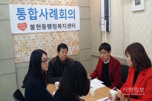지난 29일 오전 경기 동두천시 불현동행정복지센터는 복지상담실에서 동두천시 지역사회보장협의체, 사회복지협의회 종사자와 함께 '통합사례회의'를 개최했다. 사진은 참여자들이 회의하는 모습.(사진제공=동두천시청)