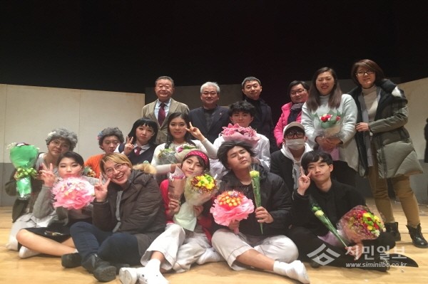 지난 4일 경기 수원시 영통구 매탄4동은 수원시 청소년문화센터 온누리 아트홀에서 청소년 극단 '싹아지' 4기의 정기공연을 성황리에 개최했다. 사진은 공연 후 배우 및 관계자들이 기념촬영하는 모습.(사진제공=영통구청)
